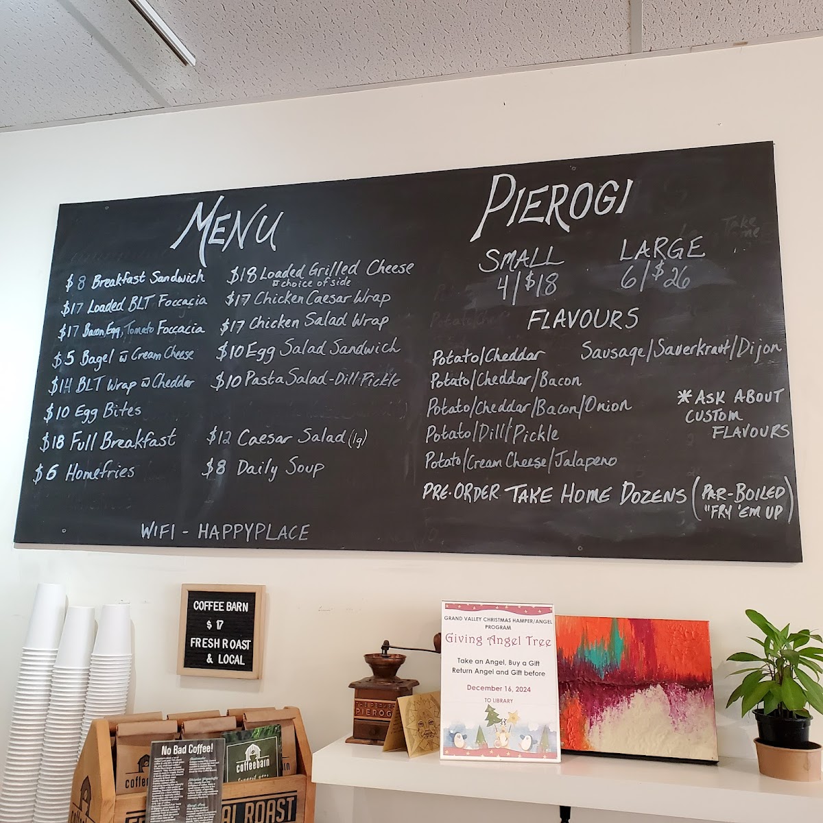 The Perked Pierogi sits quietly on Main Street in Grand Valley, offering a down-to-earth coffee shop experience that feels both inviting and distinctly local. From the moment you enter, the rich smell of fresh coffee and savory pierogies sets the tone for a comforting visit. This spot is best suited for folks looking for a cozy place to enjoy a casual bite and a great cup of coffee without pretense.