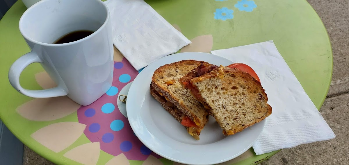 The interior keeps things simple but thoughtful, with local art on the walls that adds personality without overwhelming the space. It’s the kind of place where you can settle in with a book or catch up with friends over light, hearty fare like their potato and cheddar pierogies or the egg salad sandwich, which quietly stands out as a favorite for regulars. The food feels homemade and filling, focusing on familiar ingredients prepared with care—think grilled cheese platters with bacon and caramelized onions alongside comforting breakfast sandwiches.